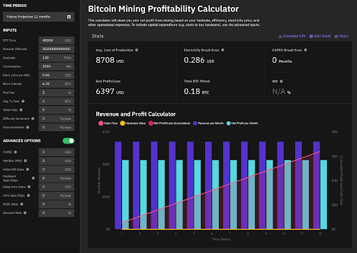 For a more straightforward approach, a great tool is the Bitcoin Mining Profitability Calculator from Braiins. With this calculator, you’re able to adjust the difficulty, BTC price, ASIC pricing, electricity prices and more to predict profitability over time. Which brings us to the next factor in Bitcoin mining.