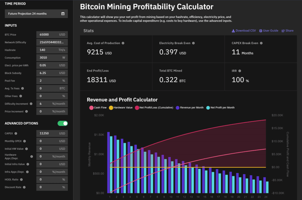 Even in a conservative scenario, where bitcoin’s price does not exceed $100,000 and network mining difficulty nearly doubles form the current 22T  to 40T, the AntMiner S19XP has an estimated CAPEX Break Even of 11 months.